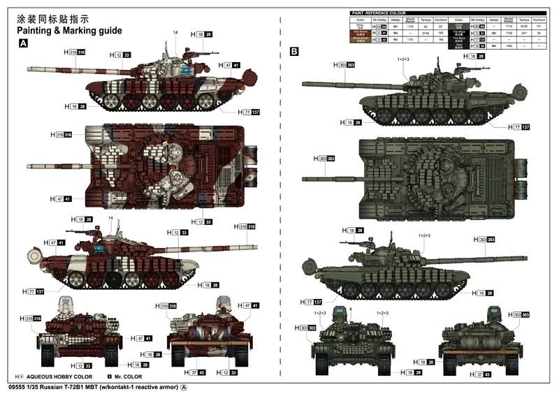 Trumpeter 1/35 Russian T-72B1 MBT (w/kontakt-1 reactive amor) Plastic Model Kit