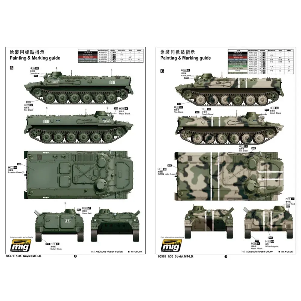In the 1970s, the Soviet Union began to plan to develop a new tractor to replace the AT-P tracked artillery tractor developed from the ASU-57 airborne combat vehicle. First, the MT-L was developed based on the PT-76 light amphibious tank. The MT-LB is an armored version of the MT-L. It was put into production in the early 1970s. It is easy to produce and cheap because it uses a large number of ready-made parts and the engine is also developed from a truck engine. It is produced by the Kharkov factory and has been licensed to Poland and Bulgaria. Specifications - Model size: Length: 180.5mm Width: 82mm - Metal parts: copper cable - Etched parts: 3 pcs - Total number of offset plates: 19 sprues, lower hull, upper hull and tracks - The kit consists of over 1100 parts - The kit w/refined detail - Multi-slide molded lower hull , upper hull - 228 individual tracks links - Photo Etched Parts included