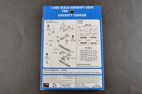 Martin BM-2. _x000D_ Accessory pack of 12 aircraft for USS Langley CV-1/AV-3 6 sprues, 2 a/c on each sprue, photo-etch L: 24.8mm, W: 35.7mm Total parts 204 for 12 aircraft 1:350 scale plastic model kit from Trumpeter, requires paint and glue