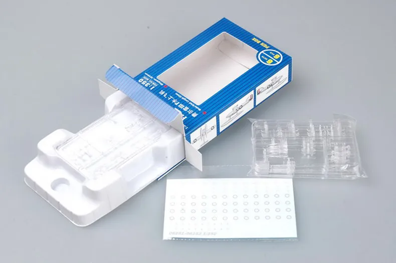 Accessory pack of aircraft for 1/350 scale ships from Trumpeter. L: 32mm, W: 39.84mm, Total parts: 30+. Requires paint and glue.