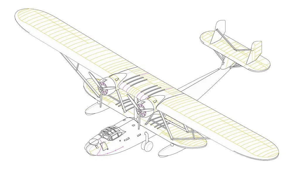 Consolidated P2Y. _x000D_ Accessory pack of 6 aircraft for USS Langley AV-3 6 sprues, 1 a/c on each sprue, photo-etch L: 53.8mm, W: 87.1mm Total parts 144 for 6 aircraft 1:350 scale plastic model kit from Trumpeter, requires paint and glue
