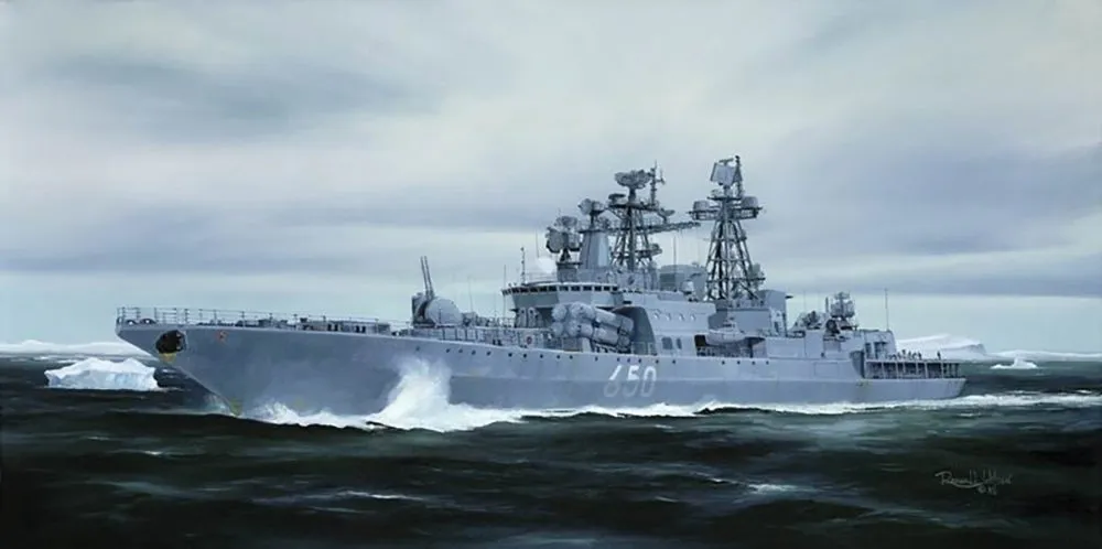 • Udaloy Class Destroyer • L: 467.2mm, W: 55.2mm • 1:350 scale plastic model kit from Trumpeter, requires paint and glue