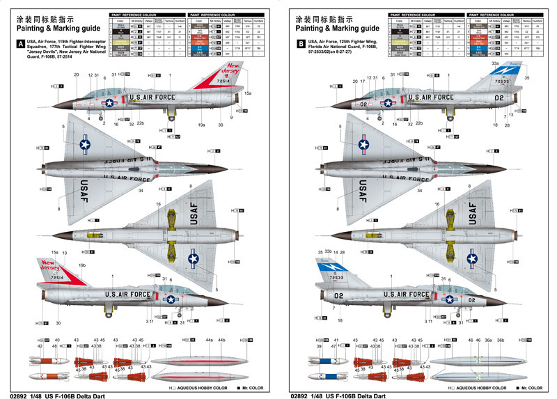 :The F-106B is the two-seat combat-capable training version of the Delta Dart.Due to the extra seat, the fuselage is actually better area ruled; combined with a likely reduction in weight.The construction of the former weapon bay and the door were also adjusted for the longer cockpit.63 of this two-seat version were built.