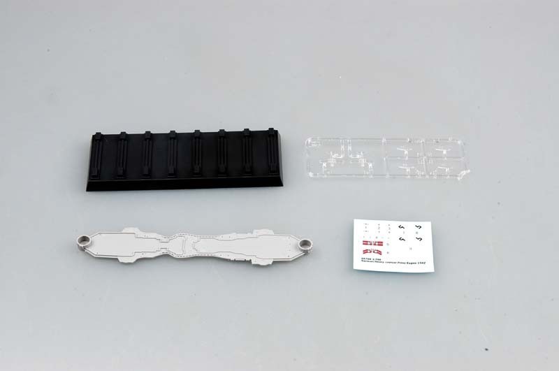 Total Sprues : 8 sprues, upper hull, lower hull, water line plate, decks, plane ane stand