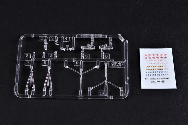 Accessory pack of aircraft for 1/700 scale ships. 1:700 scale plastic model kit from Trumpeter, requires paint and glue.