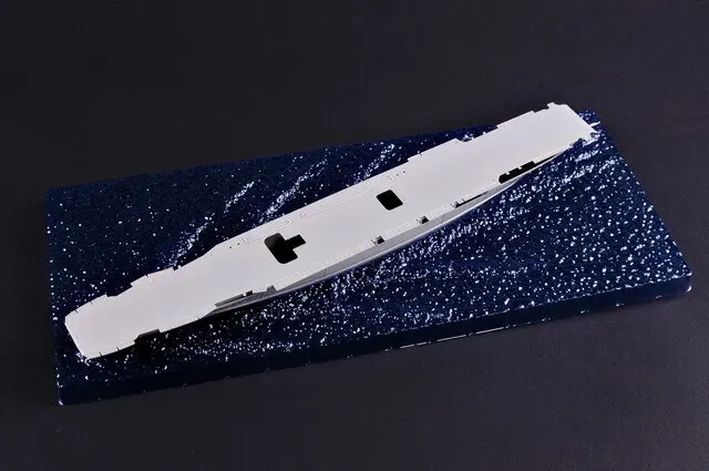 Lexington Class Aircraft Carrier. L: 387mm, W: 54mm, Waterline plate. 1:700 scale plastic model kit from Trumpeter, requires paint and glue.
