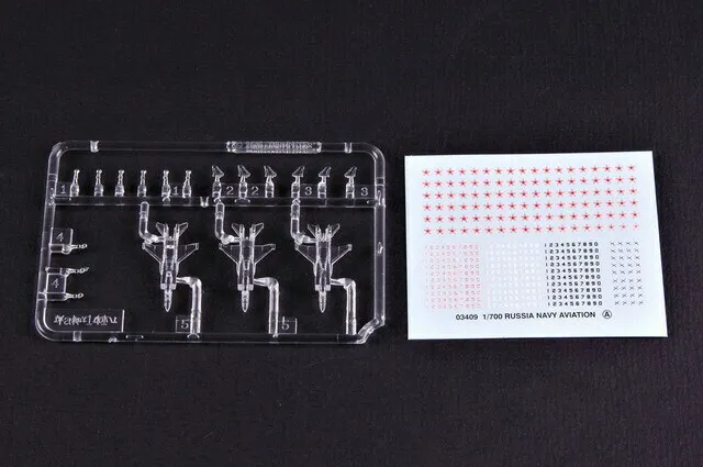 Accessory pack of aircraft for 1/700 scale ships. 1:700 scale plastic model kit from Trumpeter, requires paint and glue.