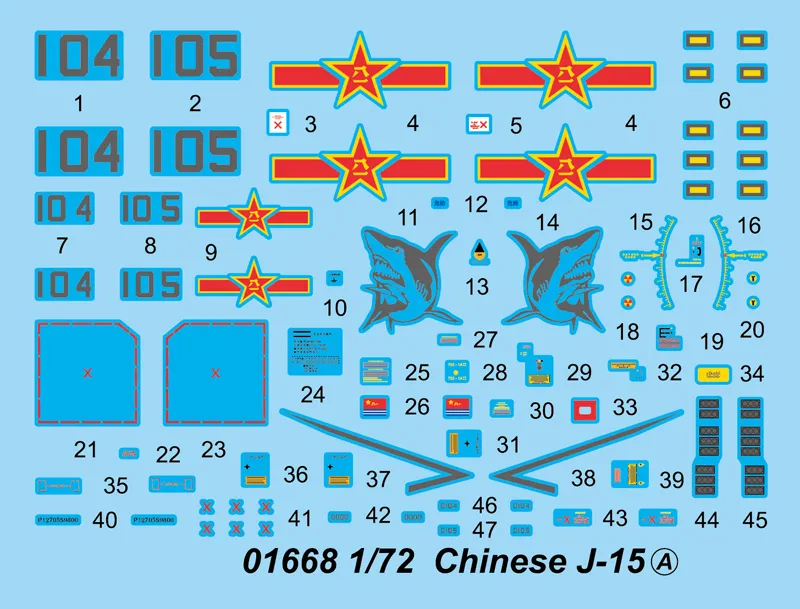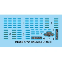 Description This is an injection-plastic jet aircraft model kit. From the manufacturer: The J-15 is a carrier-based fighter aircraft in development by the Shenyang Aircraft Corporation and the 601 Institute for the PLAN's future aircraft carriers. Rumors initially claimed the aircraft was to be a semi-stealth variant, yet later reports indicate the aircraft is based on the Russian-designed Sukhoi Su-33 and is fitted with domestically produced radars and weapons. An unfinished Su-33 prototype, the T-10K-3, was acquired from Ukraine sometime in 2001 and is said to have been studied extensively, with development on the J-15 beginning immediately afterward. While the J-15 appears to be structurally based on the Su-33, it features avionics from the J-11B program. All parts come molded in grey plastic with clear for the canopy.  Photo-etched metal detail parts and decals are also included.  Measures 305mm long and 206mm wide when completed.