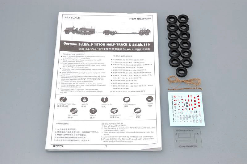 Trumpeter 1/72 German Sd.Kfz.9 (18t) Half-Track & Sd.Ah.116 07275 Plastic Model Kit