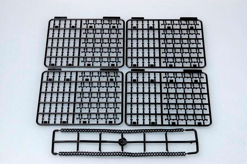 Total Sprues : 12pcs sprues, 2 TPR tracks, 13 rubber tires, frame