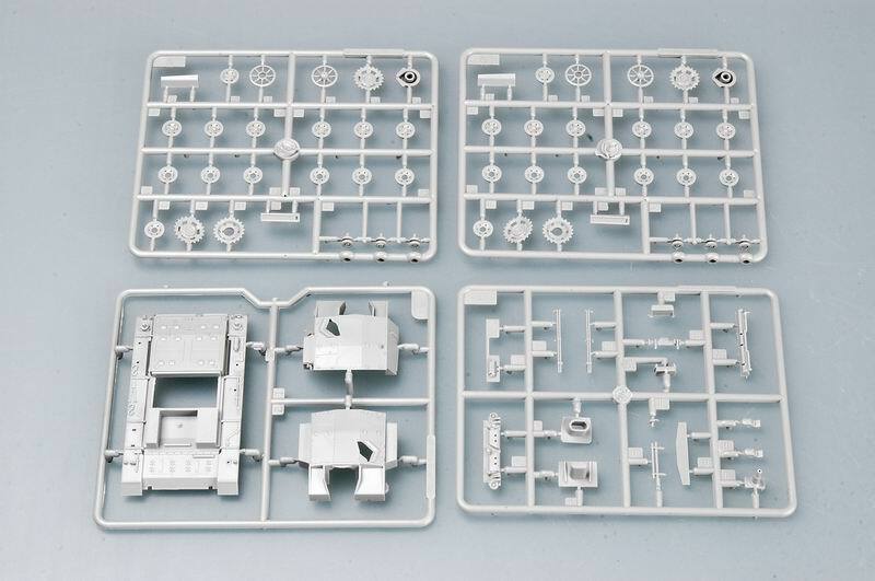 Total Sprues : 5pcs sprues, lower hull, 2 strip rubber tracks