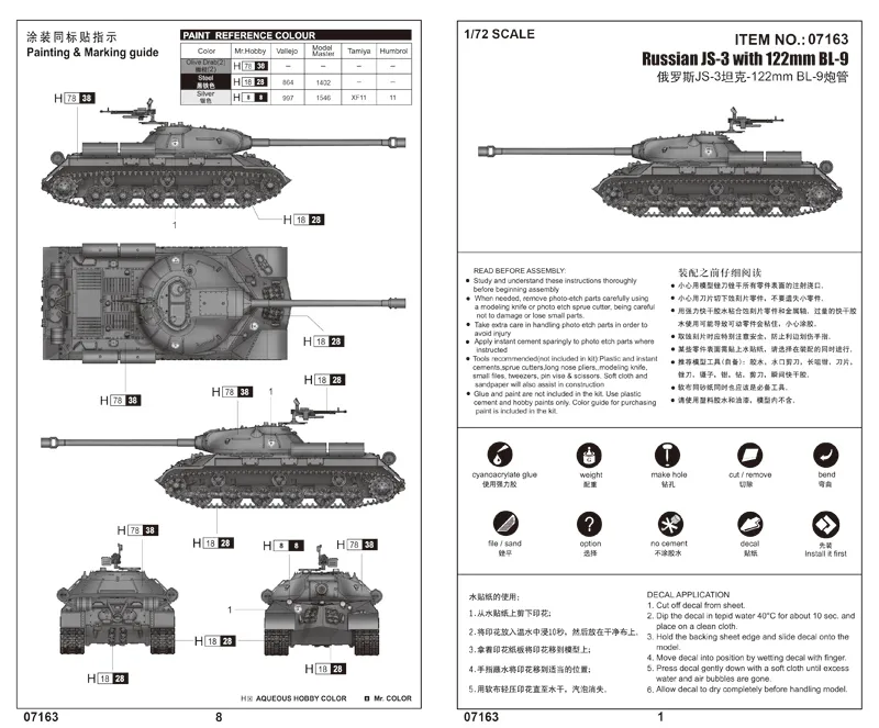 Short DescriptionTrumpeter 1/72 Russian JS-3 with BL-9 122mm Gun # 07163