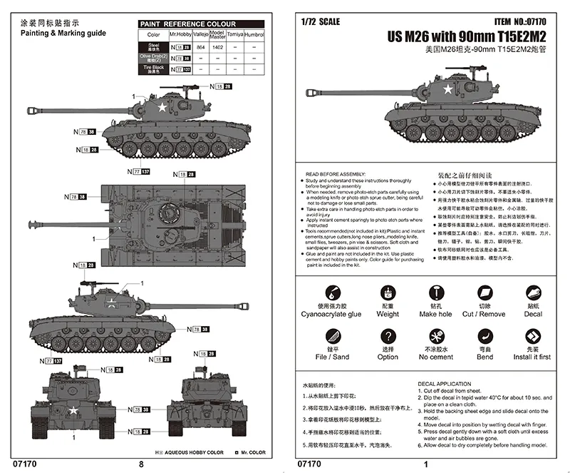 Trumpeter 1/72 US M26 (T26E3) Pershing Heavy Tank 90mm T15E2M2 # 07170