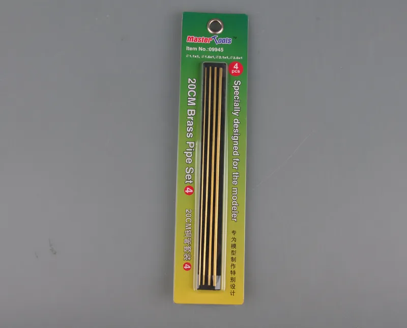 PKTM09945 20cm Brass Pipe Set 4 (ø 1.5, 1.6, 1.7 & 1.8x200mm 1 pc ea) from Trumpeter. Four different size brass pipes included. Some assembly required.