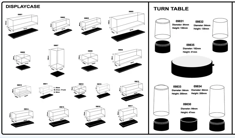 Crystal clear stackable display case from Trumpeter. Suitable for a 1/12 scale motor cycle.