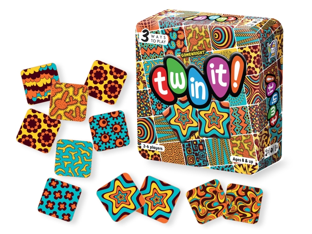 On the double! In this game of fast reflexes, quickly reveal cards featuring over 100 dazzling designs. Spot an identical pair and race to grab the match. But beware – some patterns are deceivingly close and others can be stolen if a third match appears! So focus your eyes and ready your hands - you've got to be in it to Twin It!
