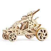 Welcome to the expanding fleet of vehicles in the amazing collection of Ugears wooden mechanical models. We would like you to meet our new little pet: the fast and fun Desert Buggy. This miniature dune buggy is ready to take you on a ride.
