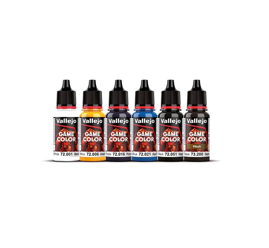 It contains 6 essential colors from Vallejo’s Game Color range, providing a versatile base for any project.