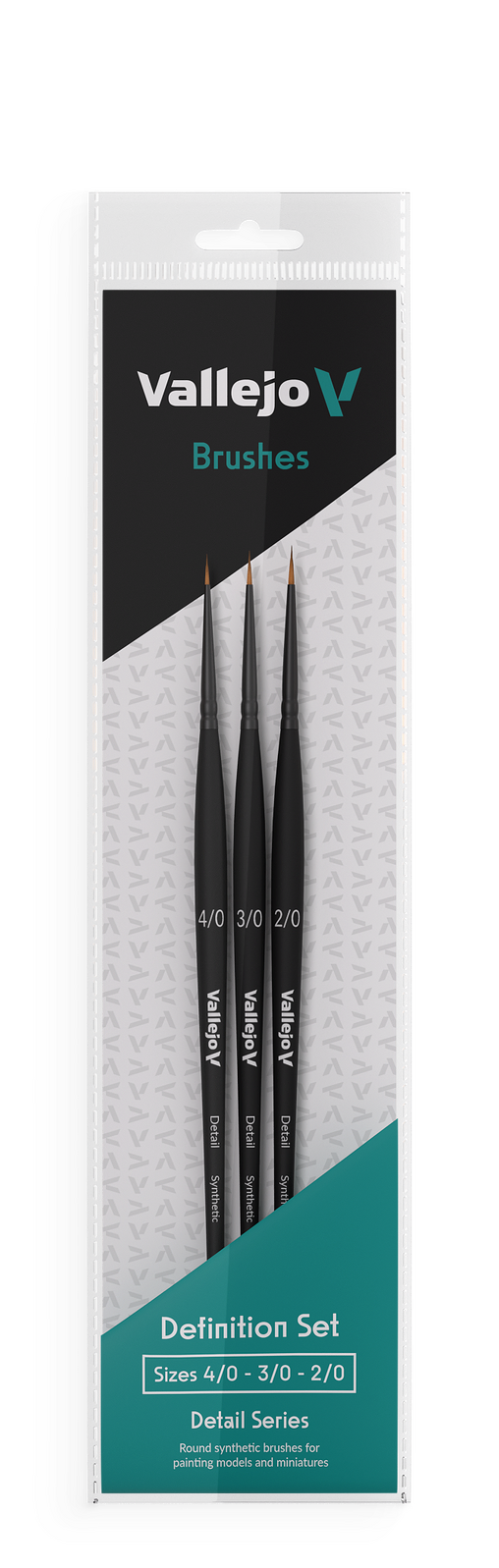 Vallejo Hobby Brushes: Detail Definition Set - Synthetic fibers (Sizes 4/0, 3/0 & 2/0)