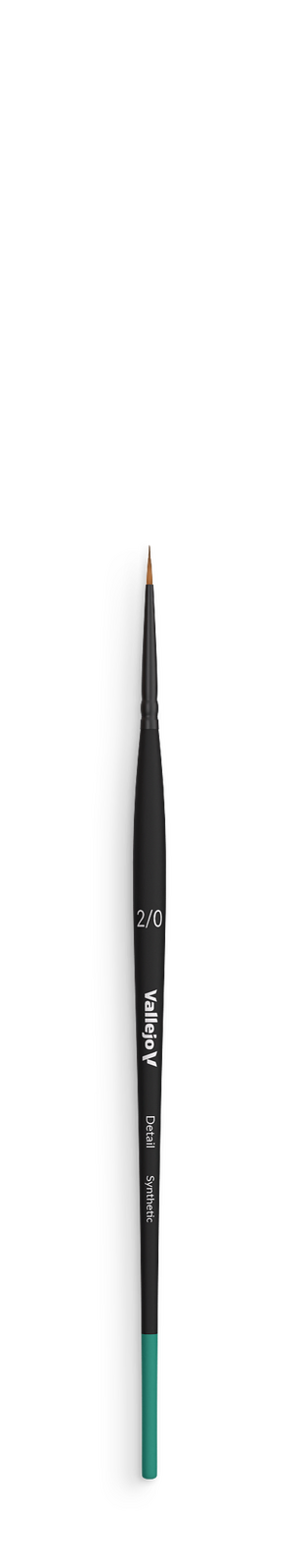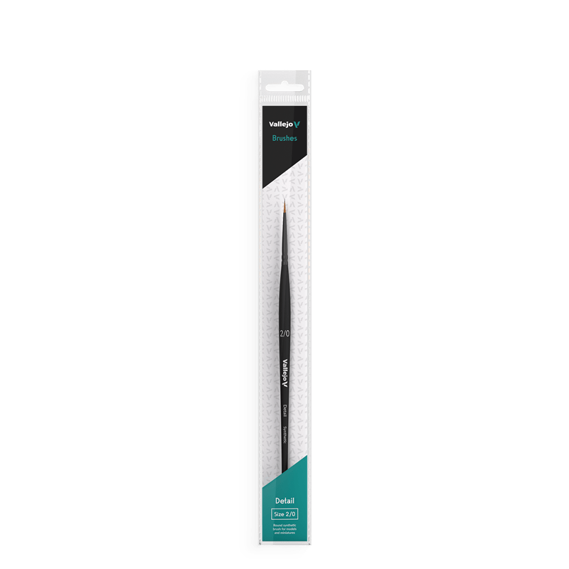 This is the Vallejo Hobby Brushes: Detail Round Synthetic Brush No. 2/0 Round brushes with synthetic fibers selected for their excellent performance and durability. Available in different sizes, from no. 10/0 to 4, these brushes are versatile and suitable for all types of models and miniatures. Optimum paint load and precise and pleasant strokes are obtained.