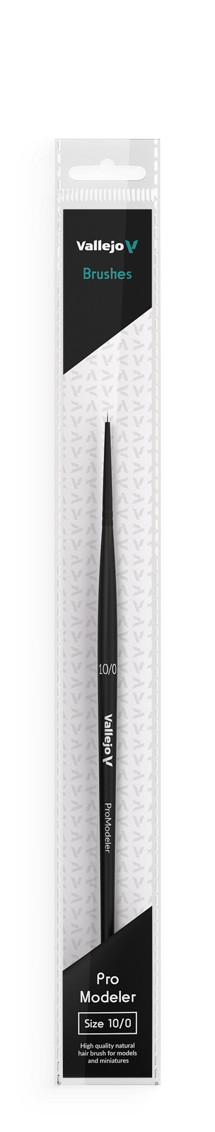 This is the Vallejo Hobby Brushes: Pro Modeler Natural Hair Round Brush No. 10/0 Round brushes, made from premium natural hair. Offer flexibility, smooth, flowing strokes and high wear resistance. Available in a range of sizes from no. 10/0 to 4, they are ideal for both large surface work and fine detailing.