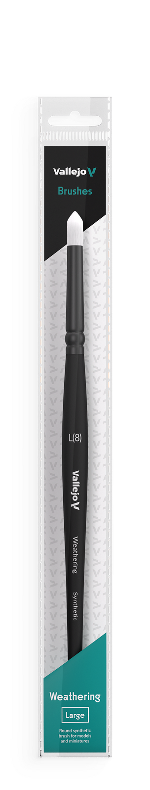 SKU: AVB08003 | Brand: Vallejo | Product: Vallejo Hobby Brushes: Weathering Round Synthetic Brush Large The rounded synthetic fiber construction handles intricate detailing in confined spaces and applies weathering effects with control. Three sizes available: S, M, and L.