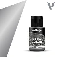 Metal Color is the innovative range of metallic colors with a water-based formulation, which uses aluminium pigments in its production. The Metal Color range offers a wide range of shades in order to imitate the metallic finish of aircraft of all types and eras. Of exceptional brightness and extraordinary power of reflection, it allows the modeler to carry out the full range of painting techniques without the need to resort to enamels and lacquers. It can be applied directly to the model using an airbrush or diluted with our Airbrush Thinner or Flow Improver. Metal Color dries very quickly, maintaining the smallest details present on the model and forming a homogeneous and self-leveling layer of extraordinary resistance a few hours after application. Metal Color can be tinted directly in the airbrush cup using colors from the Model Air or Game Air ranges. It can also be applied with a brush. Recommended compressor settings for our colors are around 15-20 Psi or 0.5-1 kg. It is advisable, in the case of airframes and aircraft model components, to apply Gloss Black Primer, available in 60 ml/2.02 fl oz bottles (ref. 73.660) and 200 ml/6.76 fl oz (ref. 74.660) with hinge cap and dropper, to enhance the special characteristics of the aluminium shades. Metal Color dries very quickly, but it is advisable to wait 12 hours after application before applying any paint masks. Also available is Gloss Metal Varnish in 60 ml/2.02 fl oz bottles (ref. 26.657) with hinged cap and dropper. For proper maintenance of the airbrush, we recommend using Vallejo Airbrush Cleaner. Packaging: Available in 32 ml/1.08 fl oz bottles with a hinged cap and eyedropper closure. Includes stainless steel stirring ball to improve paint mixing. Safety: Metal Color is not flammable, and does not contain solvents.