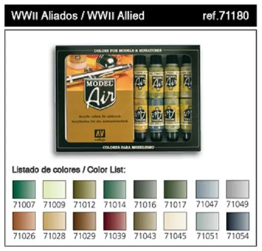 Short DescriptionVallejo Model Air WWII Allied Model Colour Set # 71180