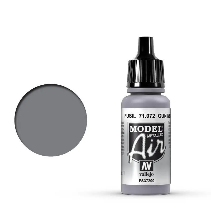 Vallejo Model Air Metallic Gun Metal is a matte, water-based acrylic paint crafted specifically for airbrushing, though it's also suitable for brush application. The Model Air range is known for providing historically accurate military colors, developed through expert research. The paint dries quickly to form a uniform, durable film while preserving even the finest model details. It comes in an 18 ml dropper bottle with an eye-dropper tip for precise dispensing and long-term preservation of unused paint. Recommended for use directly or diluted with Vallejo Airbrush Thinner or Flow Improver, applied at 15-20 PSI (0.5-1 kg) for best results.