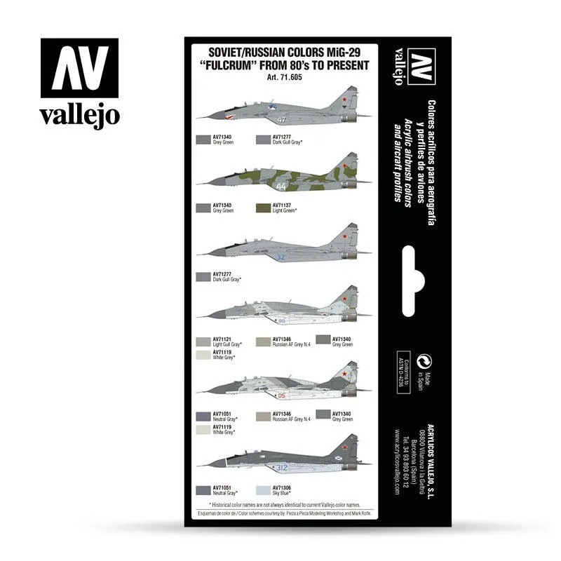 Vallejo Model Air Soviet / Russian MiG-29 "Fulcrum" from 80's to present Acrylic Paint Set