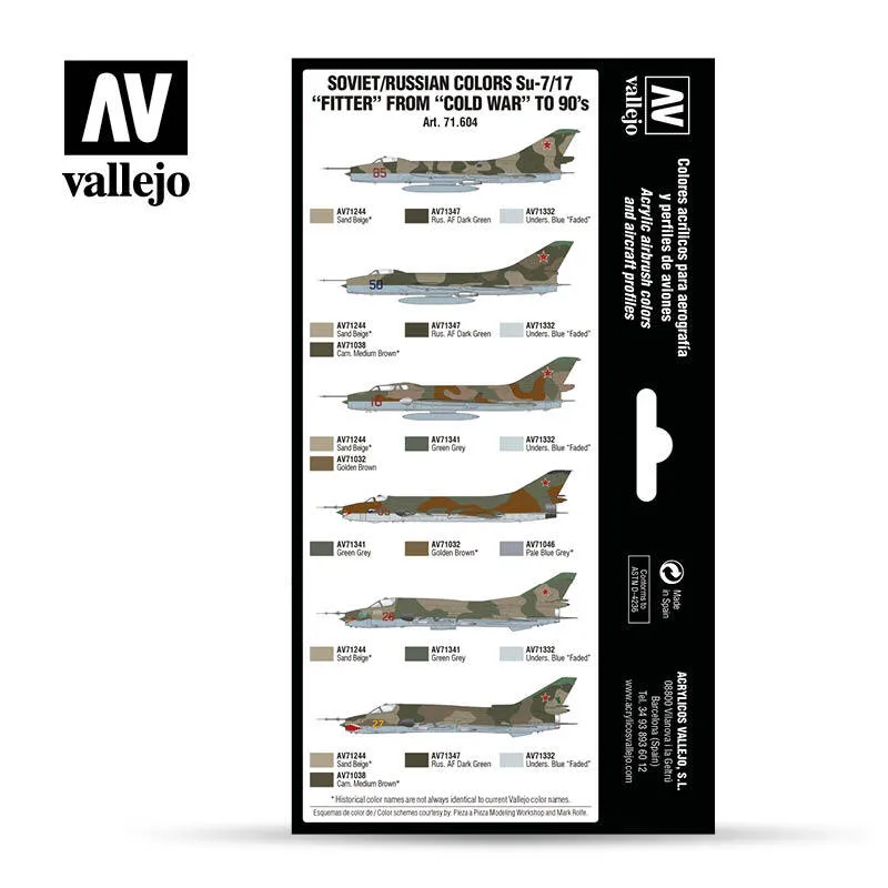 Vallejo Model Air Soviet / Russian Su-7/17 "Fitter", "Cold War" to 80's Acrylic Paint Set
