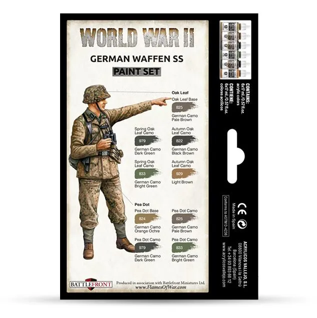 A set of colors which, together with the Utility Paint Set and German Infantry Paint Set, contains all the colors used for the painting of German SS forces.