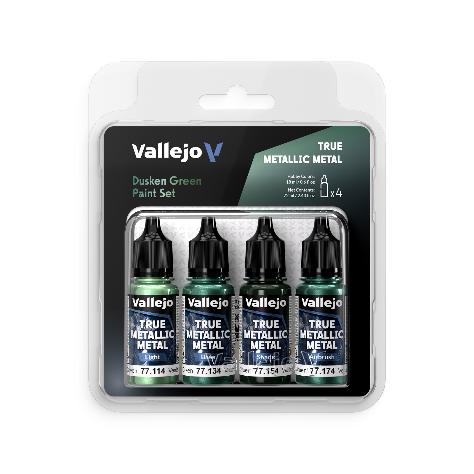 Vallejo True Metallic Metal Dusken Green - 4 Colour Paint Set