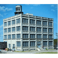 There's a covered loading dock for boxcars and roll-up doors for trucks. Up on the roof, a water tank, elevator house and chimney are included to detail this important area. Complete instructions and colorful signs round out the kit.