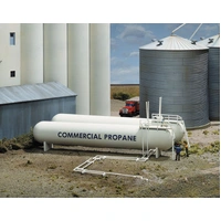 Walthers Cornerstone Propane Tanks are great details for a grain elevator or other industries that need fuel for their processes. These large capacity tanks are used to store propane to fuel grain drying equipment or anhydrous ammonia, used as a fertilizer. Similar tanks can also be found at propane dealerships.