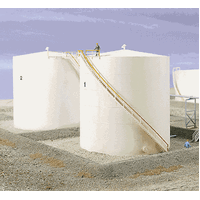 Easy-to-build kit creates a tall 500,000-gallon tank, and includes a stairway molded to fit the tank body, berm crossover stairways and decals. Also included are modular retention berms which can be used to combine multiple tall or wide tanks into a complete scene.