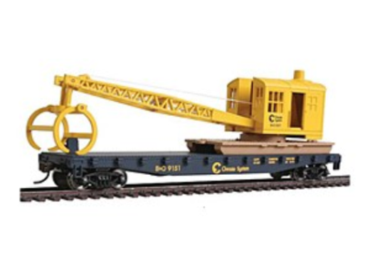SKU: WAL931-1782 | Brand: Walthers | Product: Walthers HO Trainline Log Crane Chessie/B&O The Walthers Trainline HO Scale Flatcar features an integrated logging crane suitable for pairing with log dump cars in freight operations. RP-25 metal wheels ensure reliable performance across all standard track configurations. The weighted trucks and body-mounted knuckle couplers meet NMRA specifications for compatibility with virtually all North American HO model railroads. Molded structural elements resist damage during routine operation and coupling. Chessie System Baltimore & Ohio paint and lettering provide authentic period appearance. Fully assembled and operational out of the box. Specifications: HO Scale, Flatcar with logging crane equipment, body-mounted magnetic knuckle couplers, RP-25 metal wheels, NMRA-compliant truck assembly, Chessie/B&O paint scheme.