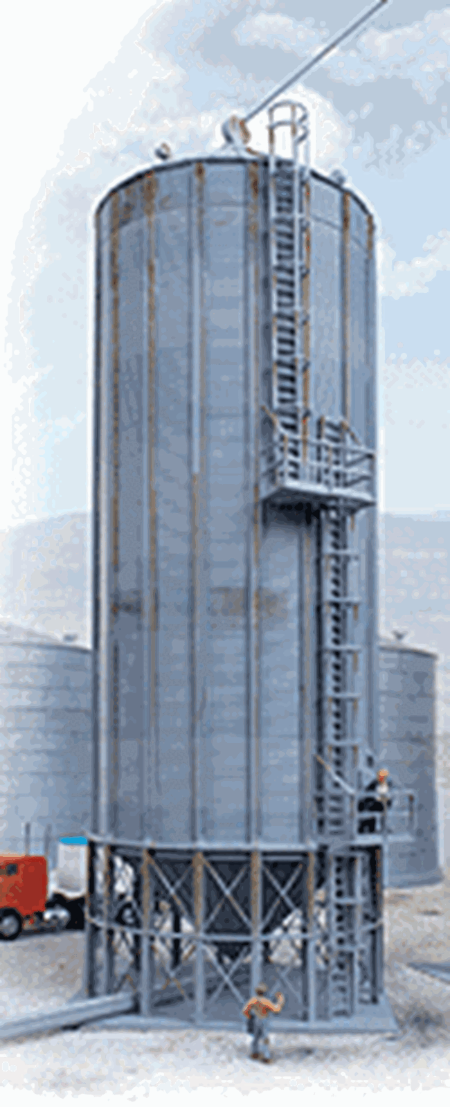 Cornerstone Wet-Dry Grain Storage Bins are signature structures for modern grain-handling scenes. This HO structure kit includes parts for two tall, corrugated-metal structures, perfect for a small facility or as part of a larger complex. If your post-1960s railroad hauls grain, these grain storage bins will look great at any elevator.
