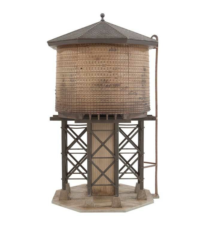 The Walthers Cornerstone Wood Water Tank kit is a typical wooden water tank as used on railroads from coast to coast. Constructed to satisfy steam locomotives' thirst for water, this fully assembled and decorated model adds instant steam-era realism to any layout. Appearing early in the 20th century, tanks like this were a fixture of railroad facilities until the last days of steam.