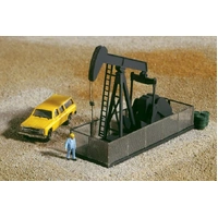 The walking beam oil pump is typical of North American designs in use since the 1920s. It includes a detailed stationary diesel power plant, walking beam, rear crank and counterweight, along with the odd-shaped "horse head" front counterweight that gives the machines their nickname. Designed from the ground up to be a working model, the kit includes provisions for a hidden drive with the motor under your layout surface. Whenever you're ready, just add the Universal Gearbox and Motor Drive Kit 933-1050, sold separately, to power your pump. Complete instructions and precise engineering produce a great looking, easy to build replica.