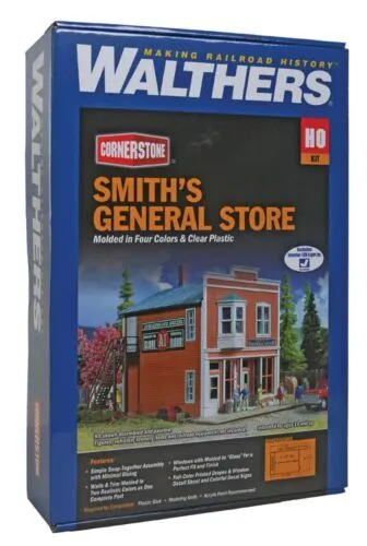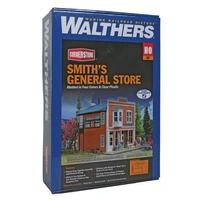 The Walthers Cornerstone Smith's General Store kit is a wonderful addition to your Victorian-era and later scenes. Often within a few blocks of the railroad tracks, the business district is one of the most important parts of any small town or big city. This kit builds into a two-story wooden false-front store with a main entrance, big display windows, a separate upstairs entrance and an exterior staircase around back. It's ideal for your steam- or diesel-era scene. This kit features many snap-together parts molded in two colors including fine-scale window mullions and window glazing molded as a single piece. Similar structures are still in use across the continent, often mixed in with other storefronts along busy streets in small towns or lovingly restored in historical areas, so this kit will be at home on your steam or diesel-era layout. Looking for more shops like the Smith's General Store? Check out this selection of Cornerstone businesses.