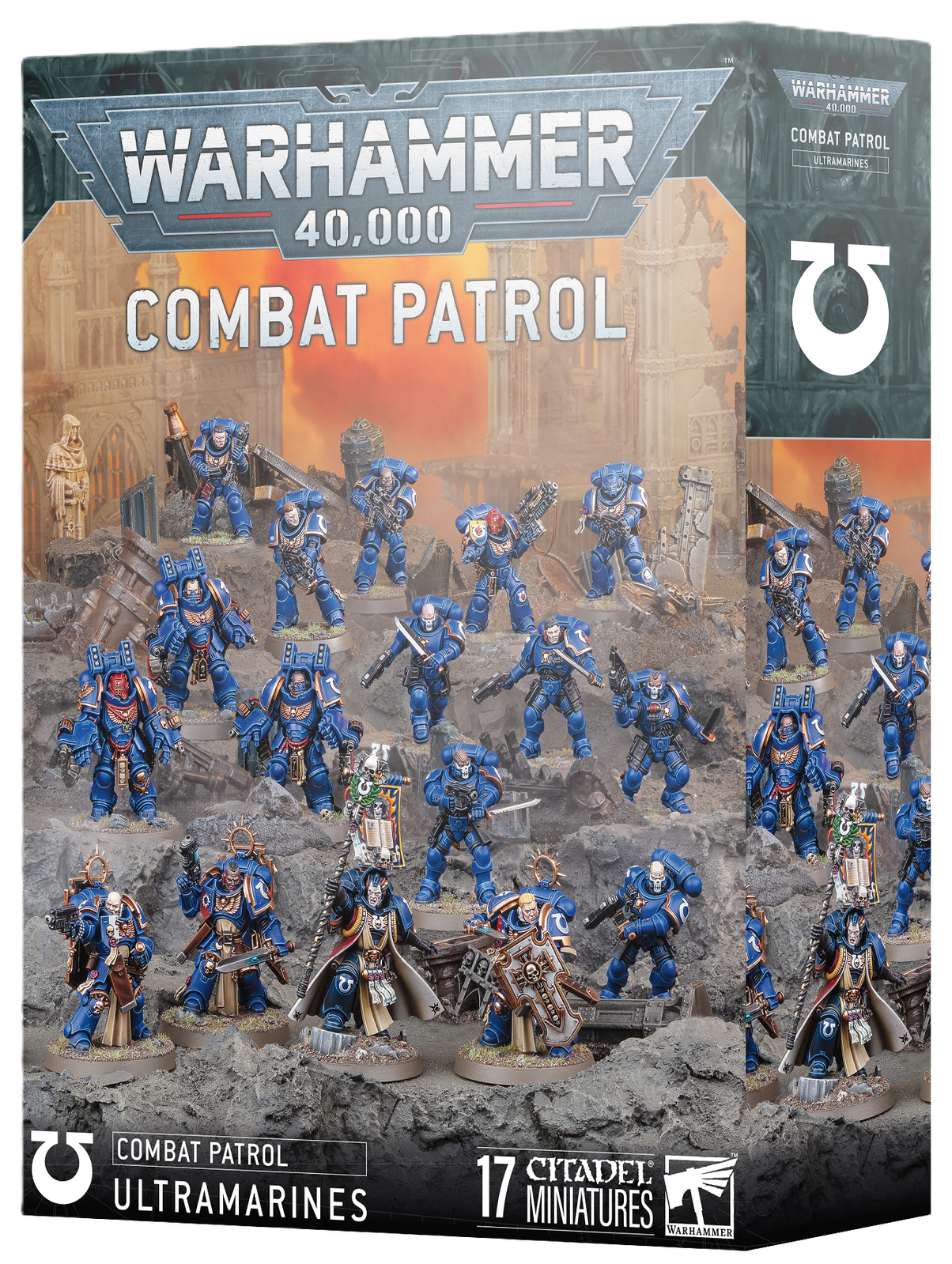 This box is the perfect way to start a new Ultramarines collection â or expand an existing army â and save money compared to buying the kits individually. The army is led by Chief Librarian Tigurius. A unit of Bladeguard Veterans acts as his bodyguard. Aggressors offer fire support and aren't afraid to get up close and personal with the foe. A squad of highly mobile Reivers are adept at taking vulnerable objectives and harassing enemy units. The Intercessor Squad are your line troops, ready to fill any gaps and add their firepower to the fight while holding key objectives. These 17 plastic miniatures represent a complete Ultramarines force for use in tight, tactical Combat Patrol games of Warhammer 40,000. The rules for this Combat Patrol are available as a free download on the Warhammer Community website.