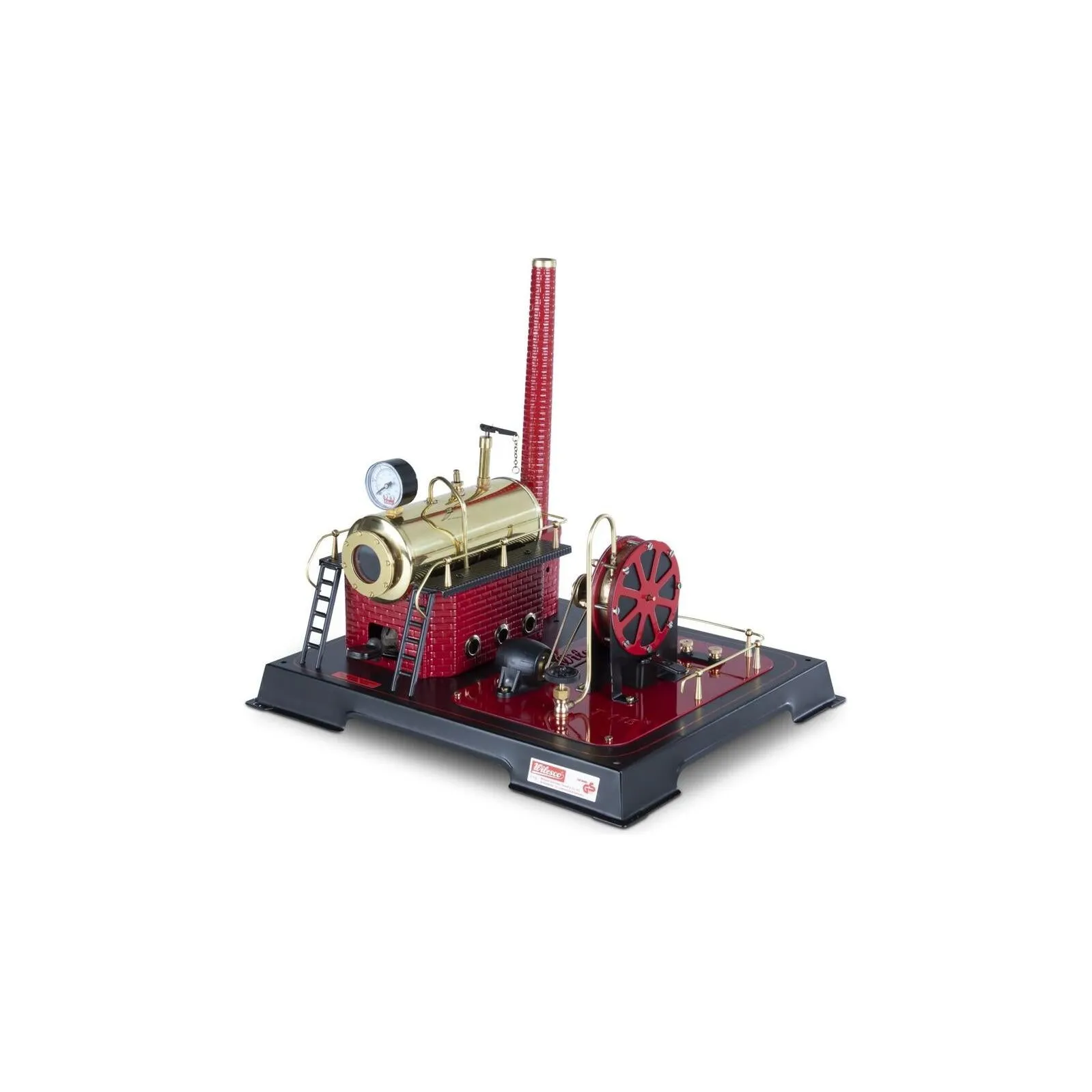 This cutting-edge, self-designed turbine is mounted on a sleek black base and features a striking red boiler house and polished brass boiler. The T115 boasts unique heat plates for faster steam production and allows for precise control of steam output via the steam shut-off valve. With enough power to run a generator, this turbine is perfect for both industrial and educational settings. Experience the future of steam technology with Wilesco's T115 Model Turbine.