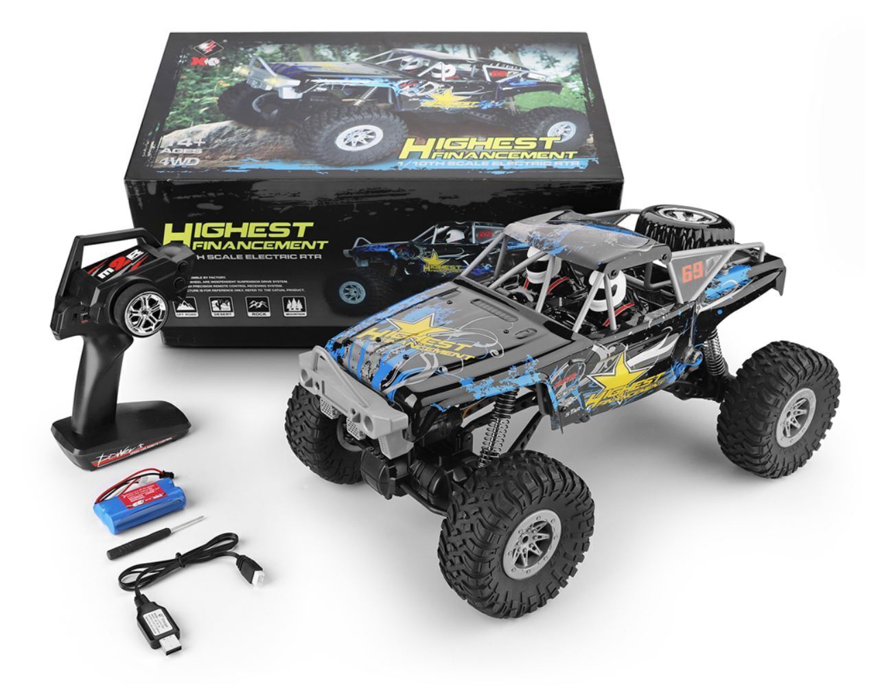 This WL Toys 104310 remote control Rock Crawler RC Truck can go over any terrain and even climb rocks. The lightweight body and high wheel clearance of this Remote control Rock Crawler allows it to drive on uneven surfaces and climb obstacles up to 45 degrees in incline. With its big capacity battery, it offers up to 40 minutes of play time.