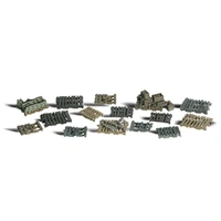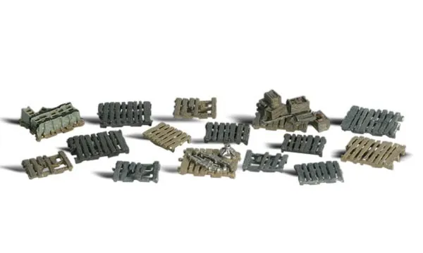 More than 10 wooden skids are included in this set. Some are piled three high, others are singles. There are some concrete blocks and other pieces of junk piled on top.