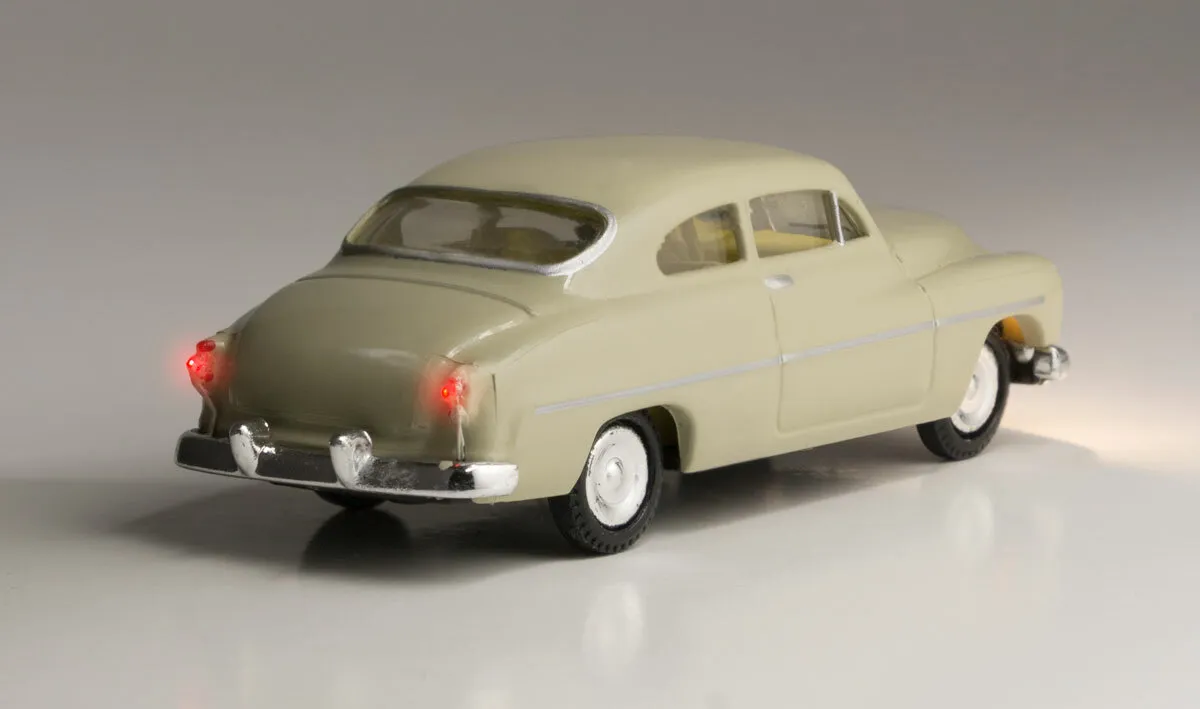 Simple, yet elegant, this classic car likes to strut its stuff down main street for all to see. Just Plug® Vehicles make it easy to model backcountry roads or busy city scenes. With a driver and a set of headlights and taillights, your layout's traffic has never looked so realistic. Add a Vehicle to a Just Plug Light Hub for easy installation. Just Plug and you're done! 20mA per Vehicle. Model scenery from Woodland Scenics.