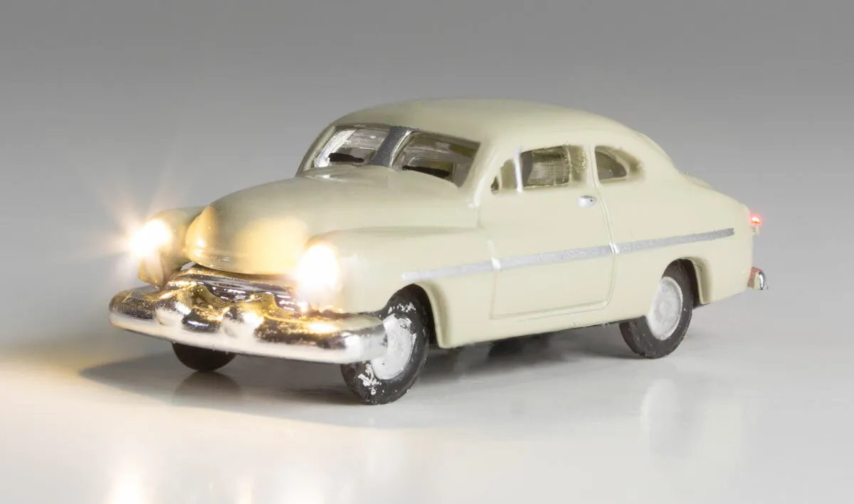 Simple, yet elegant, this classic car likes to strut its stuff down main street for all to see. Just Plug® Vehicles make it easy to model backcountry roads or busy city scenes. With a driver and a set of headlights and taillights, your layout's traffic has never looked so realistic. Add a Vehicle to a Just Plug Light Hub for easy installation. Just Plug and you're done! 20mA per Vehicle. Model scenery from Woodland Scenics.