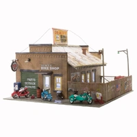 Spice up the 'seedy' side of your town with a dash of historical flare. Deuce's Bike Shop represents a nostalgic 'easy rider' setting with incredible detail. Exterior details include a weathered 'metal' roof and siding, signs and decals, an old pop machine and a fenced yard filled with a junkyard dog and old bike parts. See photos for footprint.
