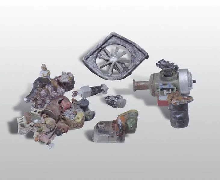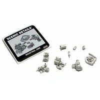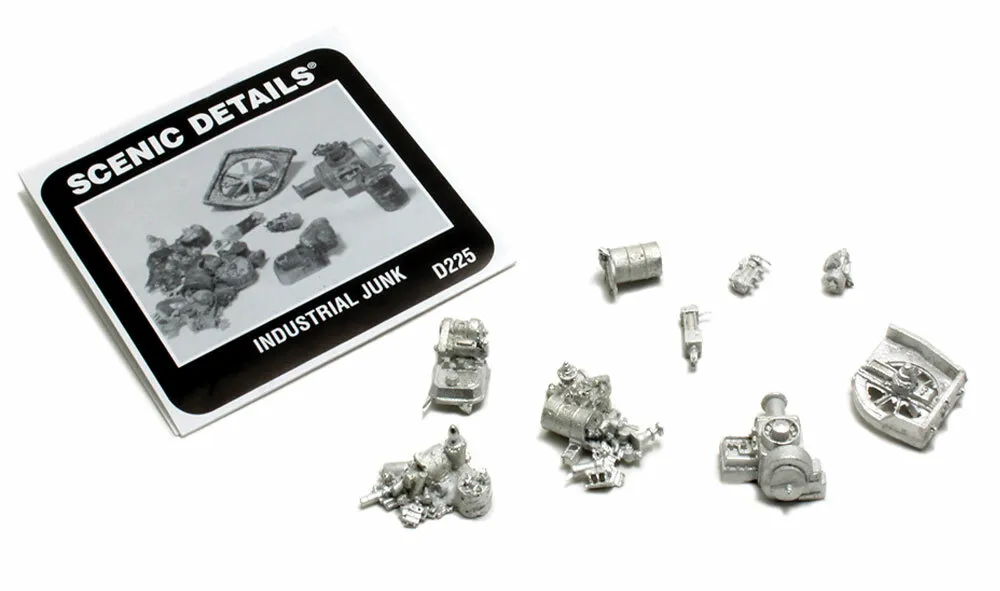 Industrial Junk HO Scale Kit Old generators, steel drums, cinderblocks, shop fans and more are indicative of heavy work done. This junk gives a realistic look outside garages, factories, barns and more. INCLUDES 9 Metal Castings Instructions