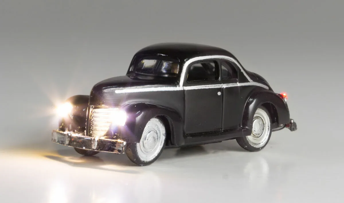 Revved up and ready to go, this timeless coupe is ready for a night time cruise under the stars. Just Plug® Vehicles make it easy to model backcountry roads or busy city scenes. With a driver and a set of headlights and taillights, your layout's traffic has never looked so realistic. Add a Vehicle to a Just Plug Light Hub for easy installation. Just Plug and you're done! 20mA per Vehicle. Model scenery from Woodland Scenics.